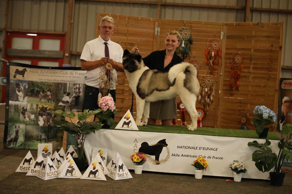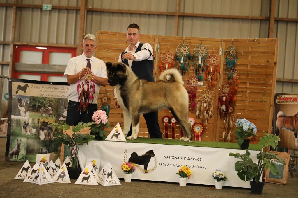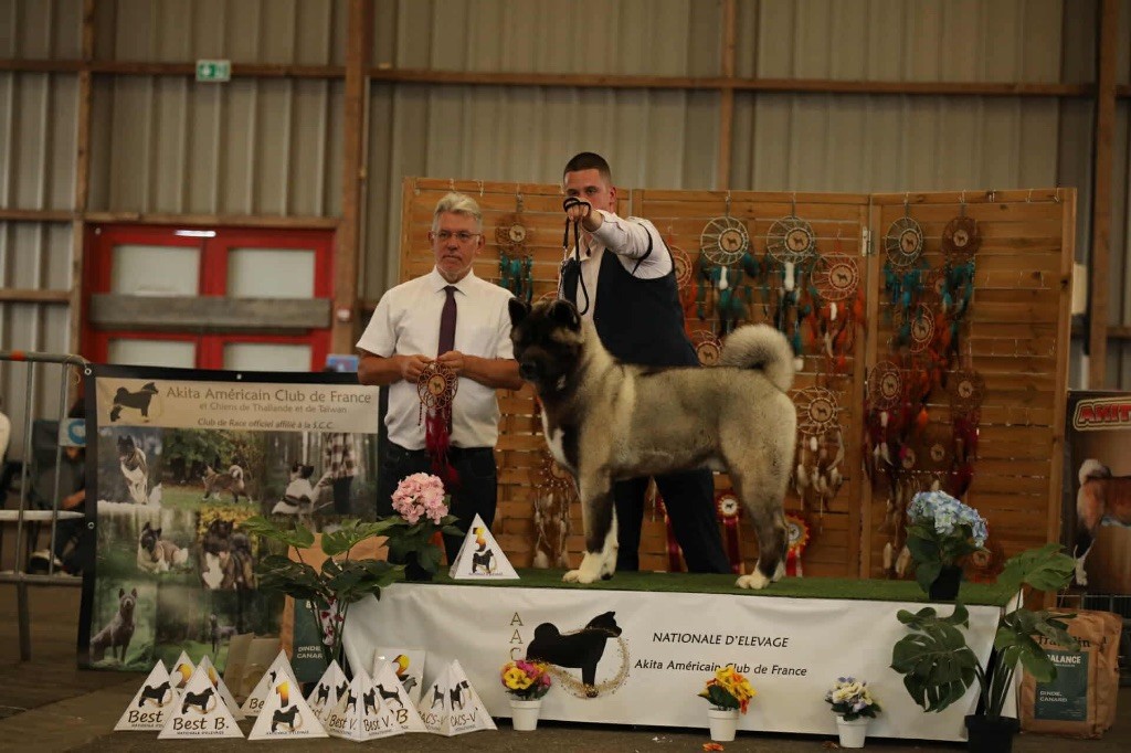 Très bonne occlusion, excellente tête, très bon oeil forme et couleur. Oreilles bien portés, excellente encolure et dessus, attache de fouet. Excellente poitrine et cotes. Épaule oblique, excellente ossature et pieds. Très bon aplomb avant et arrière. Très bon mouvement